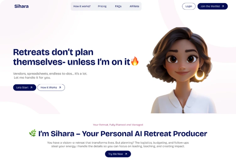 Sihara is ideal for retreat organizers, travel planners, event producers, and teams who want a proactive AI assistant to simplify planning and reduce operational stress.