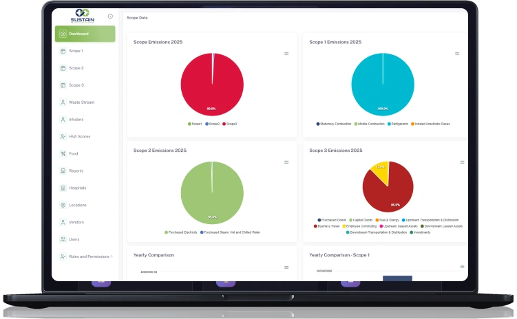 • HVAC Scores, Waste Stream, Inhaler & Medical Waste, Water Usage, Fuel Logs, and Energy Inputs.